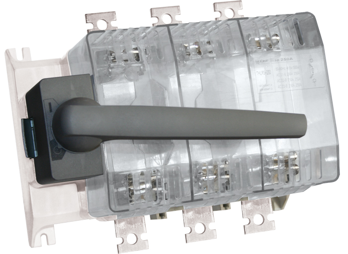 Применяются в качестве аварийного или главного выключателя для токов от 160 до 630 А во вводно-распределительных устройствах, распределительных и шкафах управления и др. Устанавливаются на монтажную панель. Конструктивно ВРЭ EKF PROxima состоит из трехполюсного основания с механизмом замыкания/размыкания контактов и дугогасительными камерами, прозрачной защитной крышки для визуального определения положения контактов и рукоятки. Конструкция контактных выводов обеспечивает болтовое присоединение шин или проводников, оконцованных кабельными наконечниками. Есть возможность установки замка для блокировки включения/отключения.